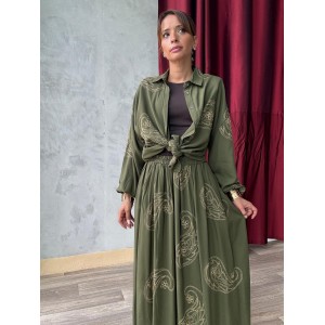 Robe longue au style romantique et bohème, confectionnée en 100% coton pour un confort optimal et une belle tenue. Disponible en taille 1 et taille 2. Matière légère et respirante, idéale pour toutes les saisons. Motifs texturés en relief ton sur ton pour un effet raffiné. Coupe ample et fluide, adaptée à toutes les morphologies. Manches longues légèrement bouffantes avec poignets élastiqués. Patte de boutonnage sur le devant pour un style casual chic. Jupe à volants pour un tombé élégant et féminin. Parfaite pour un look décontracté-chic, cette robe se porte aussi bien avec des bottines que des sandales selon la saison.