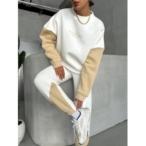 Ensemble jogging sweat ample, avec col rond et manches longues. Inscription écriture gomme sur l'avant. Accordé au pantalon qui possède un élastique et un cordon de serrage à la taille. Affrontez le froid avec style, ce magnifique jogging est entièrement molletonné de l'intérieur.